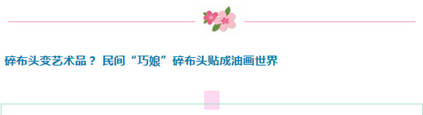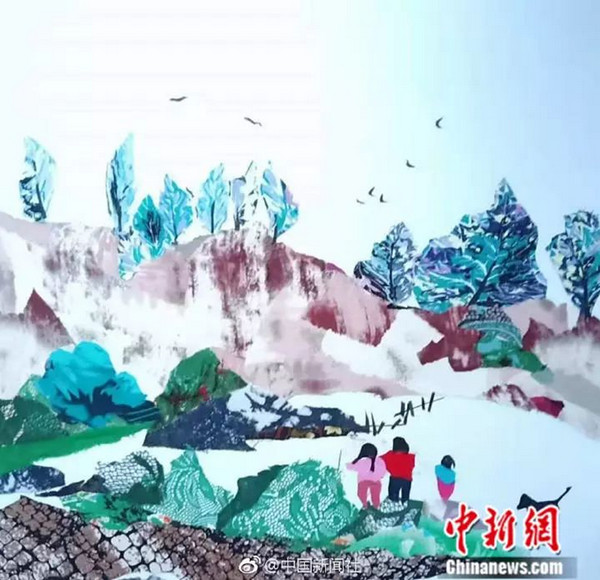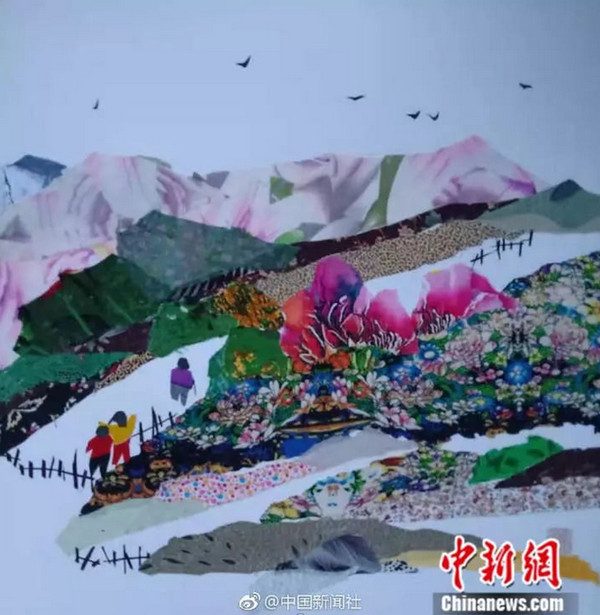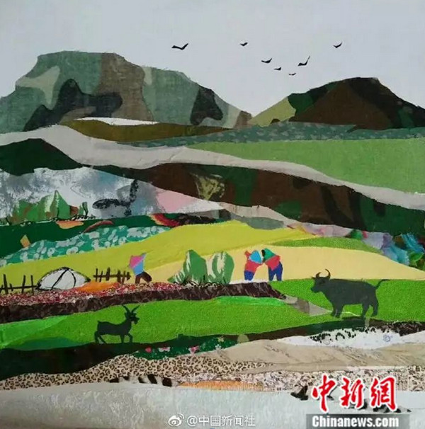 田园锦秀、春色撩人、踏青董志塬……一块块碎布头被甘肃陇东的张锐利贴补成不同意境的油画世界。布贴画,原名宫廷补绣,是用各种色彩的布料块、布料条,由缝制者用巧手剪贴而成,作品造型逼真大方,色彩艳而不腻,寓意悠远雅致。(张宏)