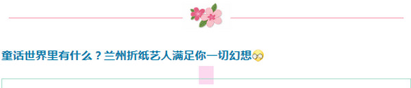 绽开的花朵、茂密的森林、矫健的小鹿、憨厚的小象……在兰州折纸艺人马丽亚的工作室内能满足你对童话世界的一切想象。早些年,马丽亚学习了很多技能,但唯独偏爱纸艺。她说,纸本身的可塑性相当高,是极佳的美术创作素材。当一张张纸在自己的设计,绘画,粘贴后呈现出了鲜活生命状态时,那种喜悦感和成就感是无法形容的。(高展)