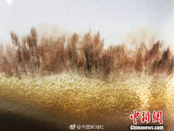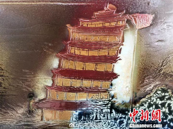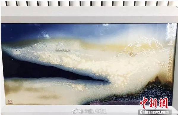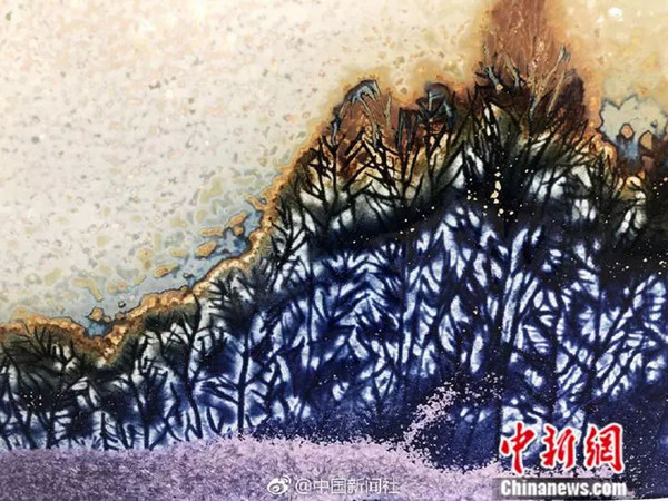 甘肃民间艺人王清路将粗犷豪放的西北风光融入进瓷板画的创作之中,绘画后的瓷板经过1300℃高温烧制,表面釉色发生自然变化,形成了无法提前预知的奇妙色彩与花纹,如同印象派画家笔下的油画般,带给人无尽的想象空间。(记者 徐雪)