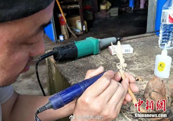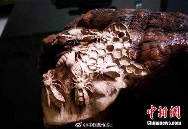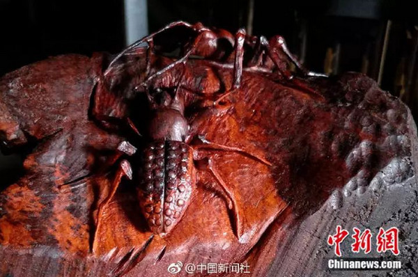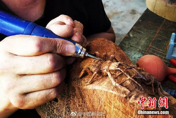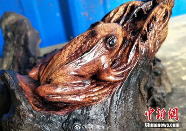 蜜蜂、蚂蚱、蜥蜴、青蛙……在他手下,木头、树根都变能“化腐朽为神奇”,变成不可思议的艺术品。甘肃省平凉市崇信县根雕艺人甘博从事根雕艺术创作20余年,他将身边的一草一木、一花一物以根雕的形式表现出来,气韵生动,让人赏心悦目。(钟欣)