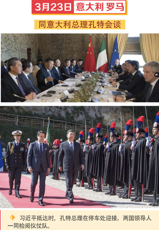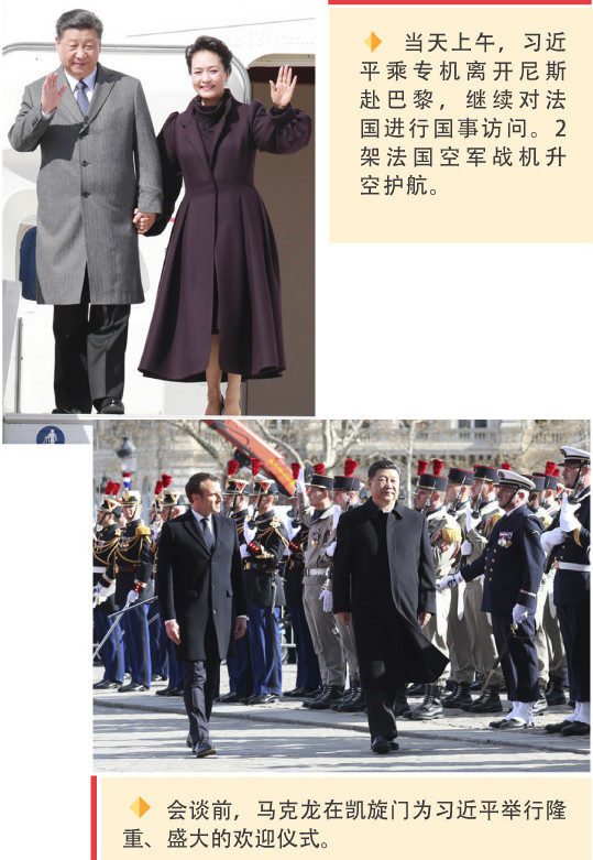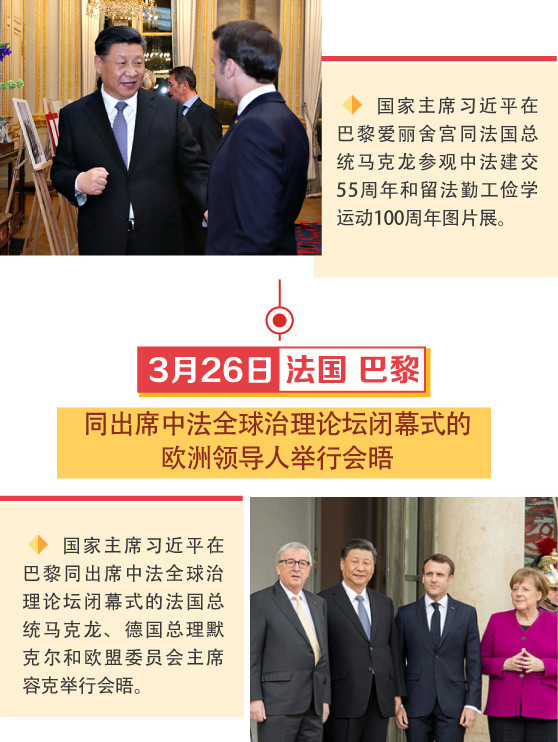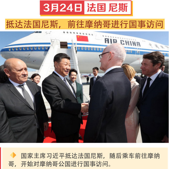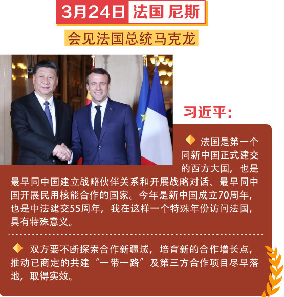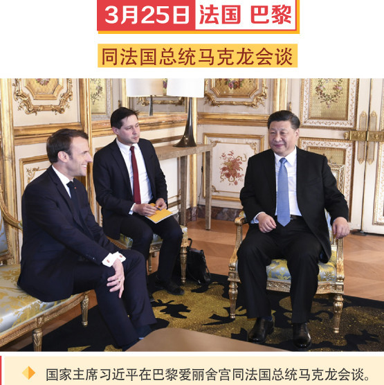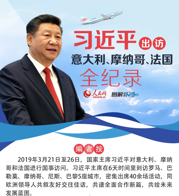 (新华社巴黎3月26日,责编:王珂园、程宏毅,来源:新华网,2019年03月27日——图解:习近平出访意大利、摩纳哥、法国全纪录,来源:人民网,2019年03月27日,图片由新华社记者鞠鹏等摄)