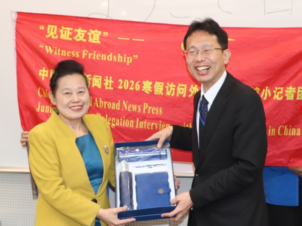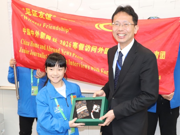 (中外新闻社小记者 林晨睿 阳思怡 桂海明 吴盈灿 覃慧林)日本是一个位于亚欧大陆东部的神秘国家,独特的地理位置造就了它的丰富多样。它是由北海道、本州、四国和九州这四个大岛以及7200多个小岛组成的,被誉为“千岛之国”。与邻国朝鲜、韩国、中国、俄罗斯、菲律宾等隔海相望。说到日本,首先想到的就是日本能成为世界经济强国,与其对教育的高度重视息息相关,尤其是基础教育。2月6日上午,“见证友谊” --中国中外新闻社小记者2026寒期采访日本驻华大使馆,日本驻华大使金杉宪治阁下致欢迎辞,日本驻华公使、新闻文化中心主任园田庸先生接受小记者采访。