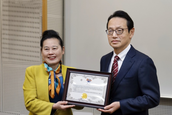 中外新闻社总裁韦燕向日本驻华大使金杉宪治阁下(H.E. Mr. Kanasugi Kenji)颁发大使俱乐部荣誉主席任职证书