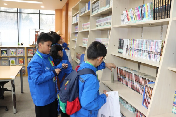 采访交流结束后,小记者们在日本驻华大使馆新闻文化中心阅览室参观。这里不仅有日本相关书籍,还有很多漫画、杂志、动画、电影等资料, 为小记者了解日本以及日本文化打开了一扇崭新的大门。小记者们纷纷选择自己喜欢的漫画、书籍认真阅读。