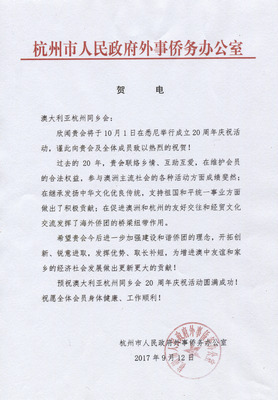 热烈庆祝澳大利亚杭州同乡会成立20周年!