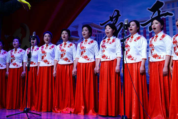 几年来,吉林大学鼎新合唱团在学校领导关心下,坚持党的群团工作的政治性、先进性和群众性原则,与吉林大学艺术学院师生同台演唱《不忘初心》,与学校团委大学生合唱团共唱《吉人天下》,在“花开鼎新”文艺演出中共产党员群体高唱《我宣誓》,与学校民主人士高歌《我和我的祖国》,先后在“纪念五四运动100周年”“我和我的祖国”“芳华吉大”等主题文艺晚会集体出演。
