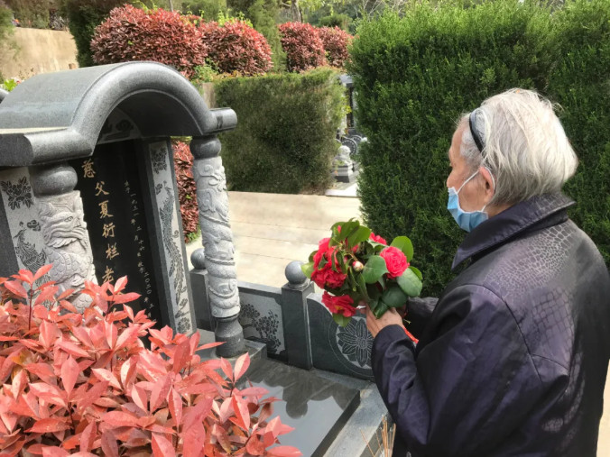 随后,妈妈从妹妹手里接过一把花,这是她当天清早从妹妹家住的小区院子里的山茶树上亲自摘下的山茶花自制而成的花束。妈妈合手持花面向墓碑虔诚地对爸爸说话:“老头子,对不起啊,我平时脾气不好,总是大声训你,我以后再也不大声训你了。”随后话锋一转,又深情自语:“你(指爸爸)现在不要叫我去陪你啊,你先在那边安静地等我,等一璞过几年生了小孩,这样我们的四个孙子辈都有了下一代,我代你亲眼看到圆满的四世同堂,那时我再去陪你!”妈妈知道,爸爸生前有个“心病”:四位孙辈之中已有三位有了下一代,只有一位孙子还未生子。