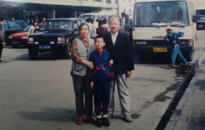 父母在北京生活时与孙子一璞合影。