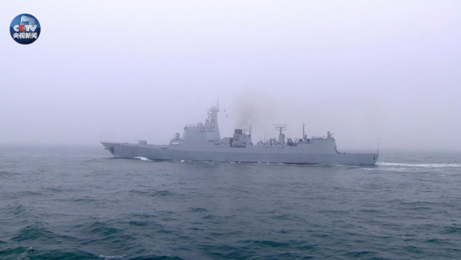 15时许,检阅舰调整航向,向参加庆典活动的来访舰艇编队驶去。