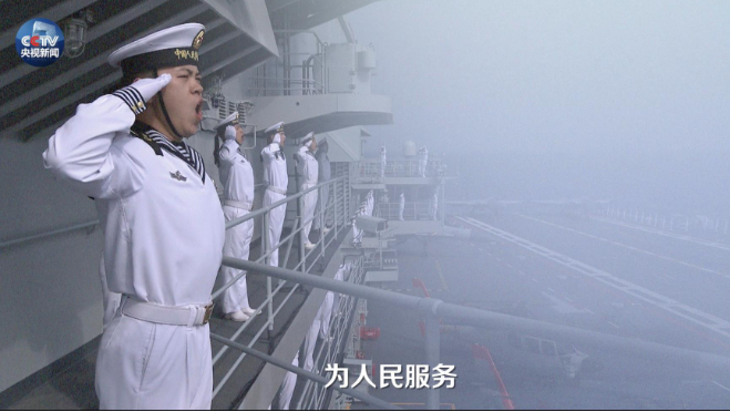 受阅舰艇通过检阅舰时,一声长哨,官兵整齐站坡,向习主席致敬。“同志们好!”“主席好!”“同志们辛苦了!”“为人民服务!”军乐作伴,涛声作和,习近平的亲切问候同官兵的铿锵回答相互激荡,统帅和官兵的心紧紧连在一起。