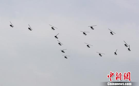 2019年国际航联世界飞行者大会18日在武汉拉开帷幕。开幕式现场,15架自转旋翼机在空中编队盘旋摆出“70”图案,以庆祝新中国成立70周年,引得现场观众阵阵欢呼。