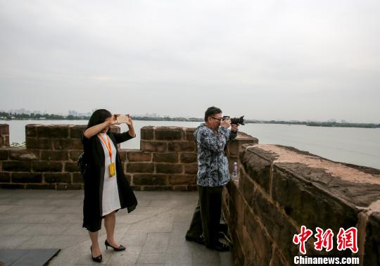 海外华文媒体代表参观武汉黄鹤楼 张畅 摄