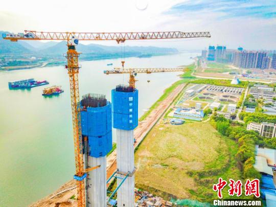图为,正在施工的宜昌长江伍家岗长江大桥北岸主塔 许名波 摄