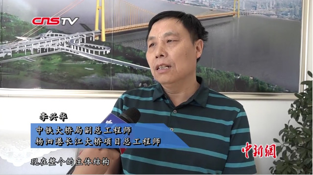 【同期】中铁大桥局副总工程师 杨泗港长江大桥项目总工程师 李兴华:现在整个的主体结构,施工已经完成,现在在做桥面的铺装,和桥面的附属结构,再就是一些拆除的工程,整个大桥的计划,九月底能够建成通车。