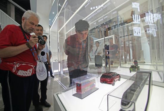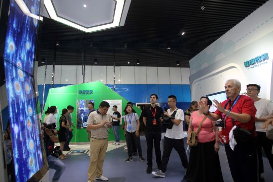 在展示馆内,俄罗斯媒体代表们通过图文展板、互动小游戏、立体电影等方式对广蓉合作生物医药产业园进行全面了解,并不时向工作人员询问产业园的远期发展计划、企业入驻情况、公司科研力量等。