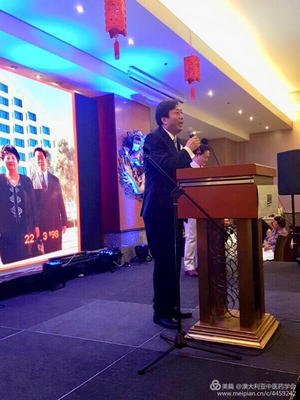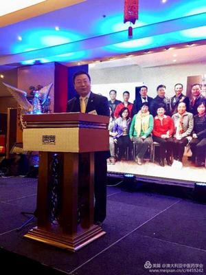 鄭建华会长首先致辞感谢历届的各位老会長,全体理事监事会成员和广大会员多年来对学会的支持,澳大利亚中医药学会创立至今已经有30多年的光辉历程,目前会员超过1600人,是澳大利亚人数最多,规模最大,获得全澳洲私人医疗保险公司认可最多的以华人为主体的专业中医药学术团体,与中国政府的中医药主管部门,各大中医院校保持着密切联系,是世界中联和世界针联以及世界自然医学联合会的会员单位。