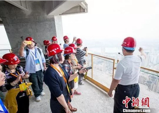 参观还在建设中的武汉绿地中心 张畅 摄
