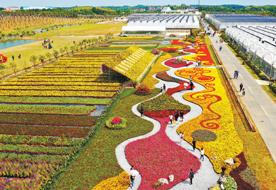 安徽省郎溪县某扶贫产业基地在“五一”假期举办花卉展,吸引周边群众赏花游玩。 李晓红摄(影像中国)