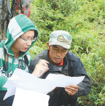 余文武(右)和科研人员开展滇金丝猴保护情况调查。赖建东摄