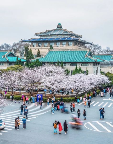 (开满樱花的武汉大学,位于东湖湖畔,摄影师@Eterlaine张炜)