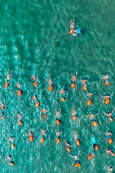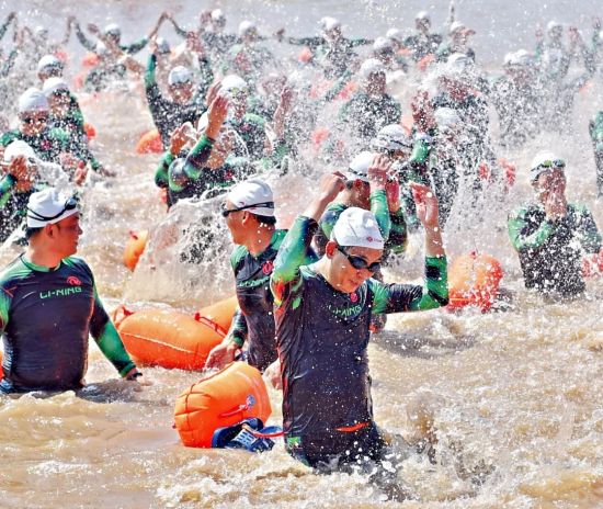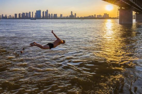 市民在江河湖泊中戏水游泳
