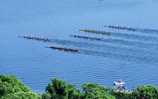 (武大和华科大学生在东湖竞渡赛艇,图片源自@长江日报)