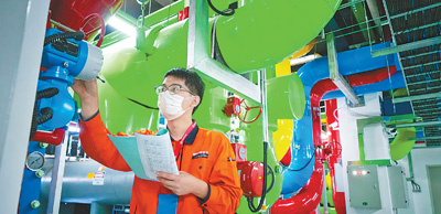 5月11日,河北正定县常山云数据中心内,科技人员在对数据中心冷冻站进行监控检查。 武志伟摄(影像中国)