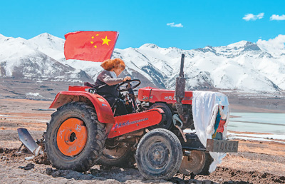 4月30日,村民开着拖拉机参加西藏那曲市尼玛县的春耕典礼。 新华社记者 侯 捷摄