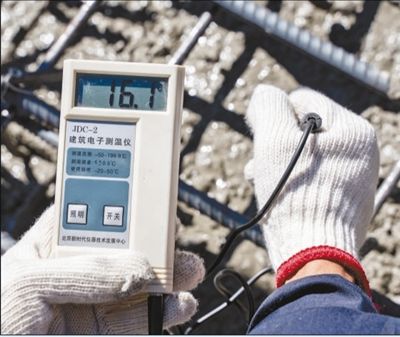 5月9日,中铁十一局拉林铁路朗县制梁场的制梁施工现场,浇筑混凝土测温工作正在进行。 袁 泉 崔金凤摄影报道