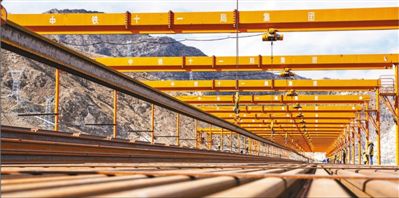 4月23日,拉林铁路今年复工以来的首列长钢轨进入协荣铺架基地。 袁 泉 丁庆滨摄影报道