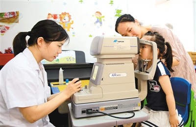 近年来,随着儿童、青少年近视率不断攀升,如何有效预防近视、爱眼护眼已经备受关注。江西省吉安市吉水县组织专业的医疗筛查队伍近日来到学校、幼儿园,为儿童提供视力等检查,并对儿童眼健康情况进行建档。 廖 敏摄