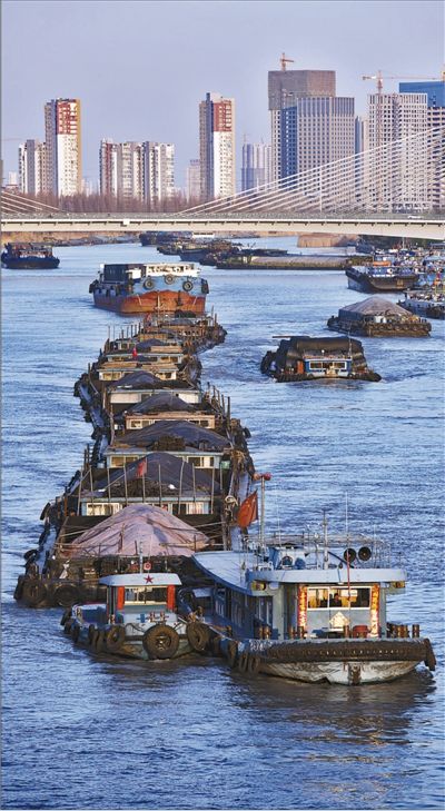 3月19日,江苏淮安市,京杭大运河上的货运船只运输繁忙。贺敬华摄(影像中国)