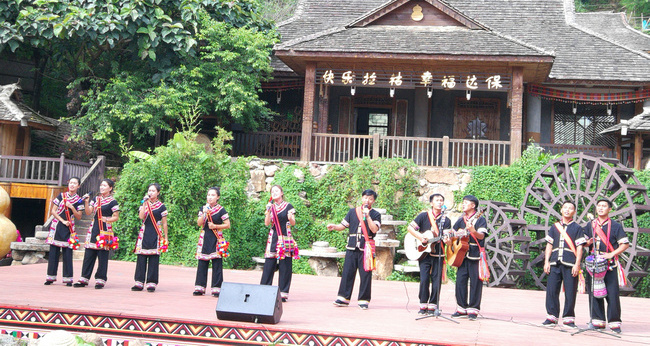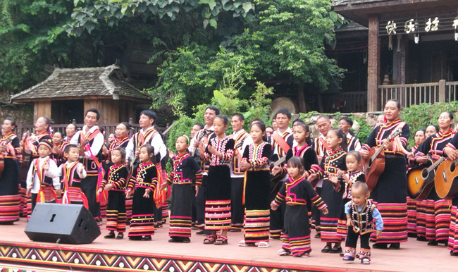 老达保是国家级非物质文化遗产保护名录《牡帕密帕》的保护传承基地之一,是普洱市第一批文化传承示范村,是《快乐拉祜》唱响的地方,有民族民间传统文化传承人6人,其中:国家级2人,省级2人。村民能歌善舞,常年开展拉祜族民间文化艺术传承、演出活动,主要有《芦笙舞》、《老鹰舞》、《马鹿舞》等83套,摆舞99套,民间歌曲100余首,会弹吉他的有252人。村民能自然熟练地演唱无伴奏合声,特别以《打猎歌》为代表的多声部合唱,表现力极为丰富。李娜倮看到,自娱自乐并不能让拉祜文化被更多人所熟知,也不会让村民们告别贫穷落后,老达保人需要走出去。2002年,澜沧县酒井乡勐根村成立了老达保拉祜雅厄艺术团,李娜倮积极动员全村102户村民加入雅厄艺术团。同时,为使拉祜雅厄艺术团全面展示绚丽多彩的拉祜文化,她积极主动承担了宣传、组织、动员、培训等大量工作。在她的大力宣传动员下,艺术团成员从成立之初的40多人发展到现在的200多人,穿上演出服他们就成为了舞台上最耀眼的明星,而脱下演出服他们成为了地道的农民。乡村旅游的升温,也让艺术团的村民们尝到了甜头。从2005年开始,李娜倮带着艺术团走出拉祜山寨,先后参加过中央电视台的《魅力十二》、《民歌中国》、《我要上春晚》等栏目的演出,让全国的观众都能听到《快乐拉祜》。老达保雅厄艺术团的村民们以自创歌曲的演唱方式,向人们介绍展示古村落的发展新貌,一曲曲歌唱共产党、歌颂美好新生活的民族歌曲从大山唱向远方,更唱响了拉祜山寨旅游文化脱贫攻坚曲......