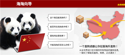 "海淘向导"-直购滤器网站一键式提供从全世界进口中国的所有产品的税费计算、通关流程及盈亏分析等。该网站给跨境电商用户提供"直购三益"分析,用户仅凭输入从哪个国家购买多少钱的何种商品,即可自动获得相应的结果。