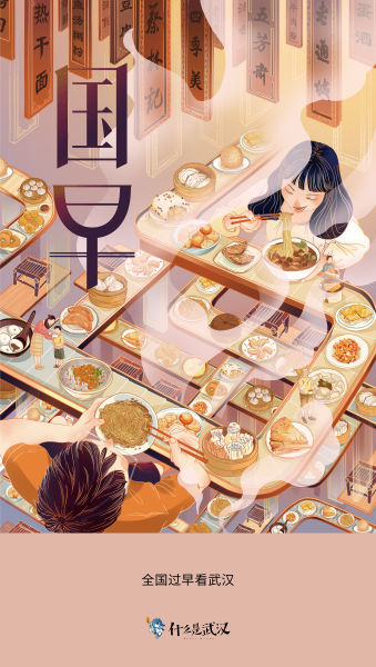 过早,是武汉在全国版图上走得最远的方言。“国早”谐音“过早”,无论是作为上百种活色生香的风味美食,还是作为一种独特的生活方式,武汉过早都以其独一无二的魅力闻名全国。画面以“无限传送带”构图承载武汉早餐的丰富精彩,传递出令人沉浸的生活氛围。