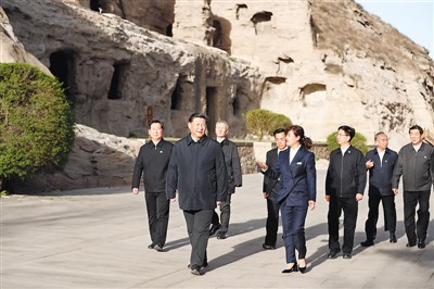 2020年5月11日,习近平来到云冈石窟考察。习近平仔细察看雕塑、壁画,不时向工作人员询问石窟历史文化遗产保护等情况。他强调,云冈石窟是世界文化遗产,保护好云冈石窟,不仅具有中国意义,而且具有世界意义。历史文化遗产是不可再生、不可替代的宝贵资源,要始终把保护放在第一位。发展旅游要以保护为前提,不能过度商业化,让旅游成为人们感悟中华文化、增强文化自信的过程。要深入挖掘云冈石窟蕴含的各民族交往交流交融的历史内涵,增强中华民族共同体意识。