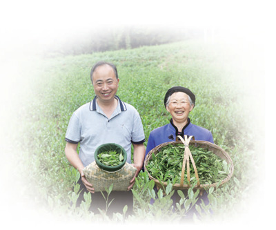 重庆黔江区中塘镇双石村驻村第一书记王运洪(左)和村民展示所种植的茶叶。 杨敏摄(人民视觉)