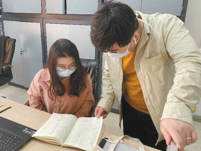 4月6日,中国铁建的翻译与留学生一起进行学习交流。中国铁建国际集团北非区域公司供图