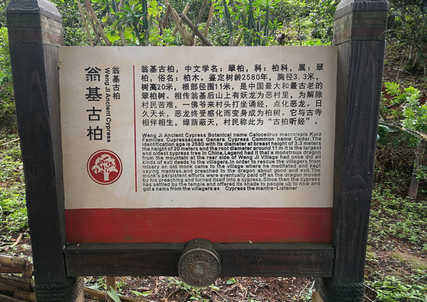 翁基系布朗族音译,“翁”是水的意思,“基”是居住地的意思。这个寨子因有的老人会看卦、算命被外面人称为看卦占卜人住的地方。古村落主要有古民居、柏树、寺庙、寨心、风雨亭、村民制茶区,民居体验馆、古榕树等景点。古村落最大的特点是“古”字,一古为古建筑,干栏式建筑外观,深沉厚重色彩,建筑材料只用木材、石头和块瓦,整体建筑风格古朴厚重;二古为古民族,布朗族是一个古老的民族,源于古代的百濮,根据历史文献记载,永昌一带的古代“濮人”就是现今布朗族的先民;三古为古朴的民风,这里民风古朴,布朗族传统的生产方式、古老的宗教信仰,简朴的婚恋习俗、简单的生活方式、质朴的精神情感,古朴的衣着服装,无不反映着这个民族是一个没有被现代社会同化的古朴的民族;四古为古树,古村落的主人所种植的古茶树有2000多亩,已有1300多年历史,古村落旁的古柏树也有2580多年的树龄,胸径3.5米,是全国最大的最旺盛的古柏树;五古为古寺庙 ,已有2000多年历史,布朗族信仰原始宗教,信仰万物有灵,后来南传上座部佛教是由傣族地区传入后,布朗族开始信南传上座部佛教 ,古寺庙是南传上座部传导布经的场所,历史悠久。