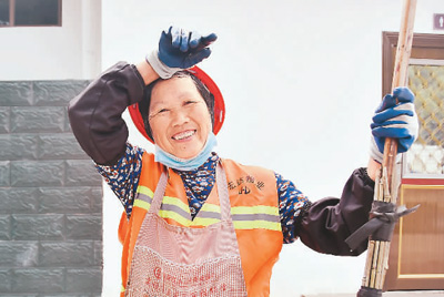 5月8日清晨,湖南省江永县潇浦镇永阳路,环卫工人唐翠英在清扫间隙小憩。 田如瑞摄(人民视觉)