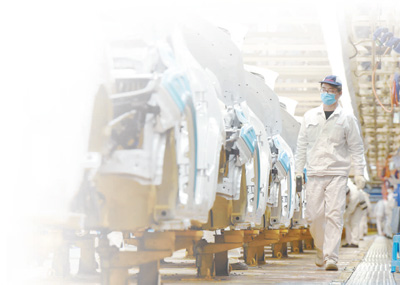 3月16日,工人在东风本田总装生产线上忙碌。周超摄