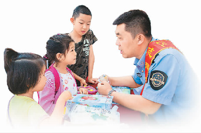 内蒙古自治区呼和浩特市玉泉区清泉街社区志愿者在为小朋友讲解食品安全常识。 丁根厚摄(人民视觉)