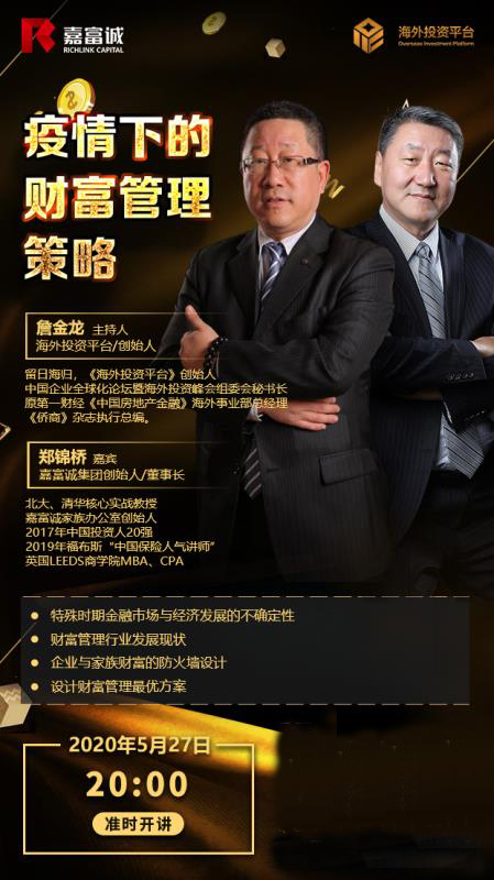 2020年5月27日8点,《海外投资平台》将联合嘉富诚一起带来一场精彩的直播。