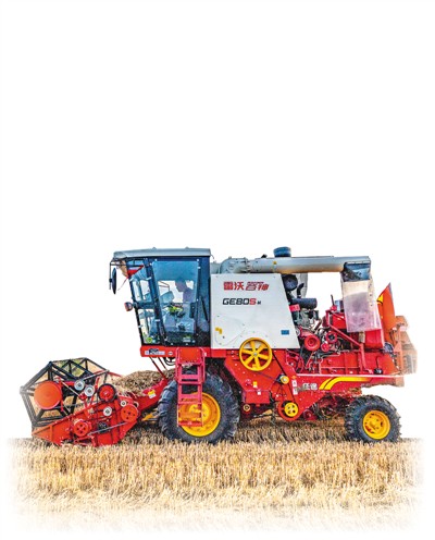 一台收割机在山西省运城市盐湖区银张村进行田间作业。 薛 俊摄(人民视觉)