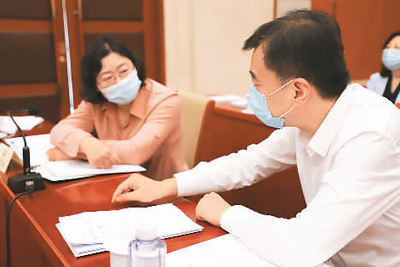 5月25日,政协无党派人士界别的两位委员在热烈讨论。 本报记者 刘佳华摄