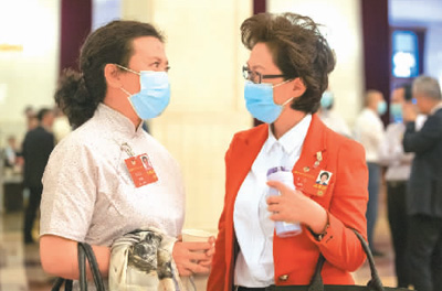 5月27日,全国政协十三届三次会议闭幕会前,委员们正在交流。 本报记者 张武军摄