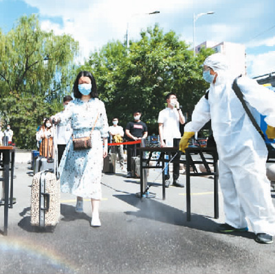 北京化工大学举行学生返校复课疫情防控演练。 新华社记者 鞠焕宗摄
