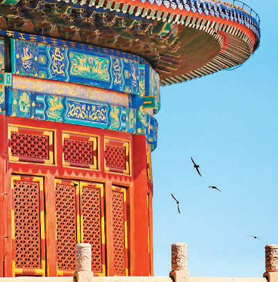 “北京城的精灵”雨燕在天坛祈年殿前飞翔。 刘宪国摄(人民视觉)
