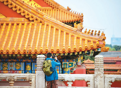 “五一”假期,游客在故宫拍摄美景。 祝振强摄(人民视觉)