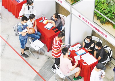 6月1日,一场大型招聘会在江汉大学校园举办,这是疫情发生后武汉举办的首场高校毕业生专场线下招聘会。武汉市人社部门从报名企业中遴选了80多家企业参加,专门招聘高校毕业生。